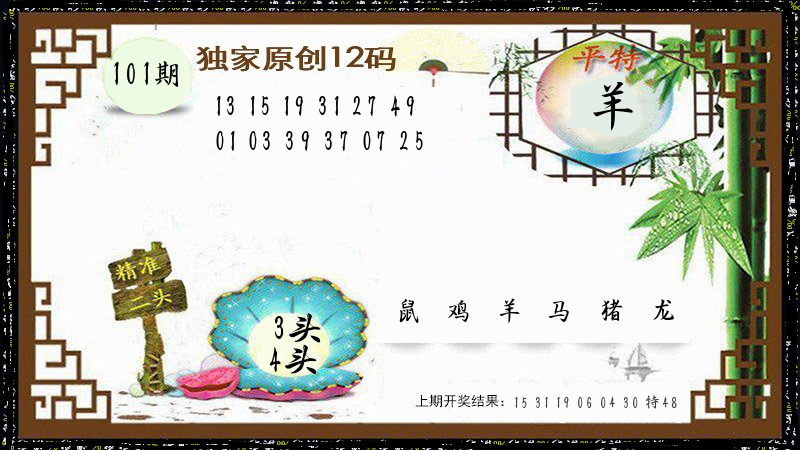 | 101期: 财神平特一尾 【444】 开: ?????? |